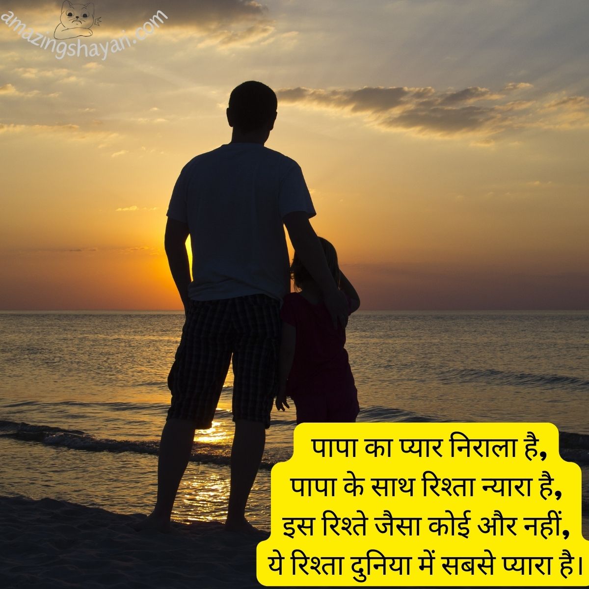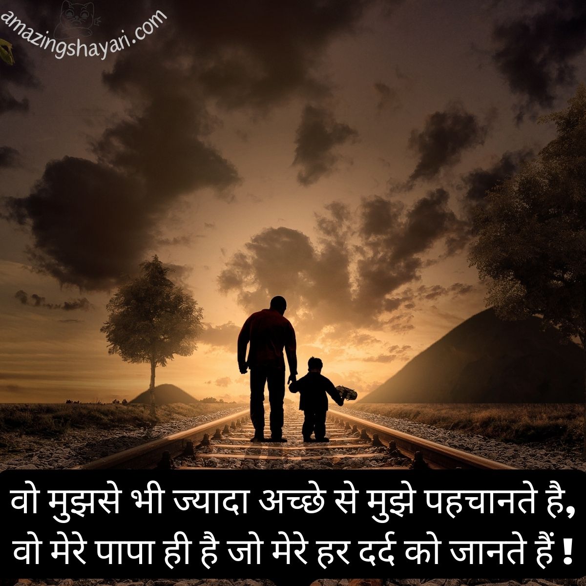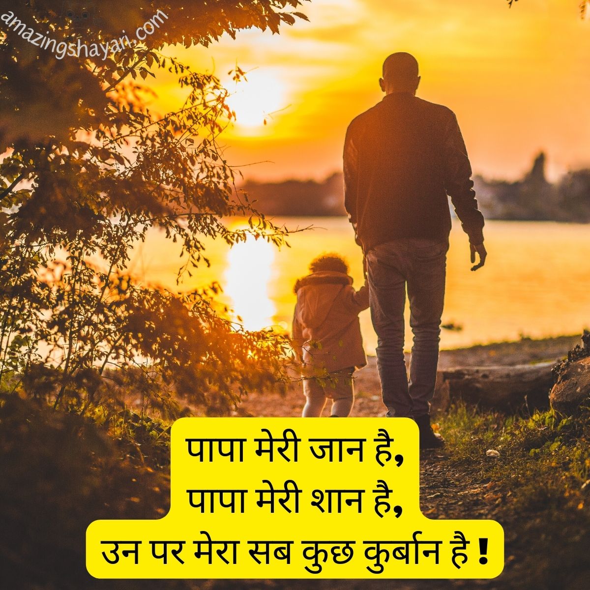 पिता के ही पीछे पूरा परिवार चलता है एक पिता अपने बच्चों के लिए एक महान इंसान होते है। एक पिता ही होता है जो अपनी बच्चो की मांगी हर इच्छा को पूरी करते हैं । इसी लिए आज का पोस्ट पापा के लिए इस पोस्ट में हमने Papa Shayari in Hindiआदि शेयर किये हैं ।