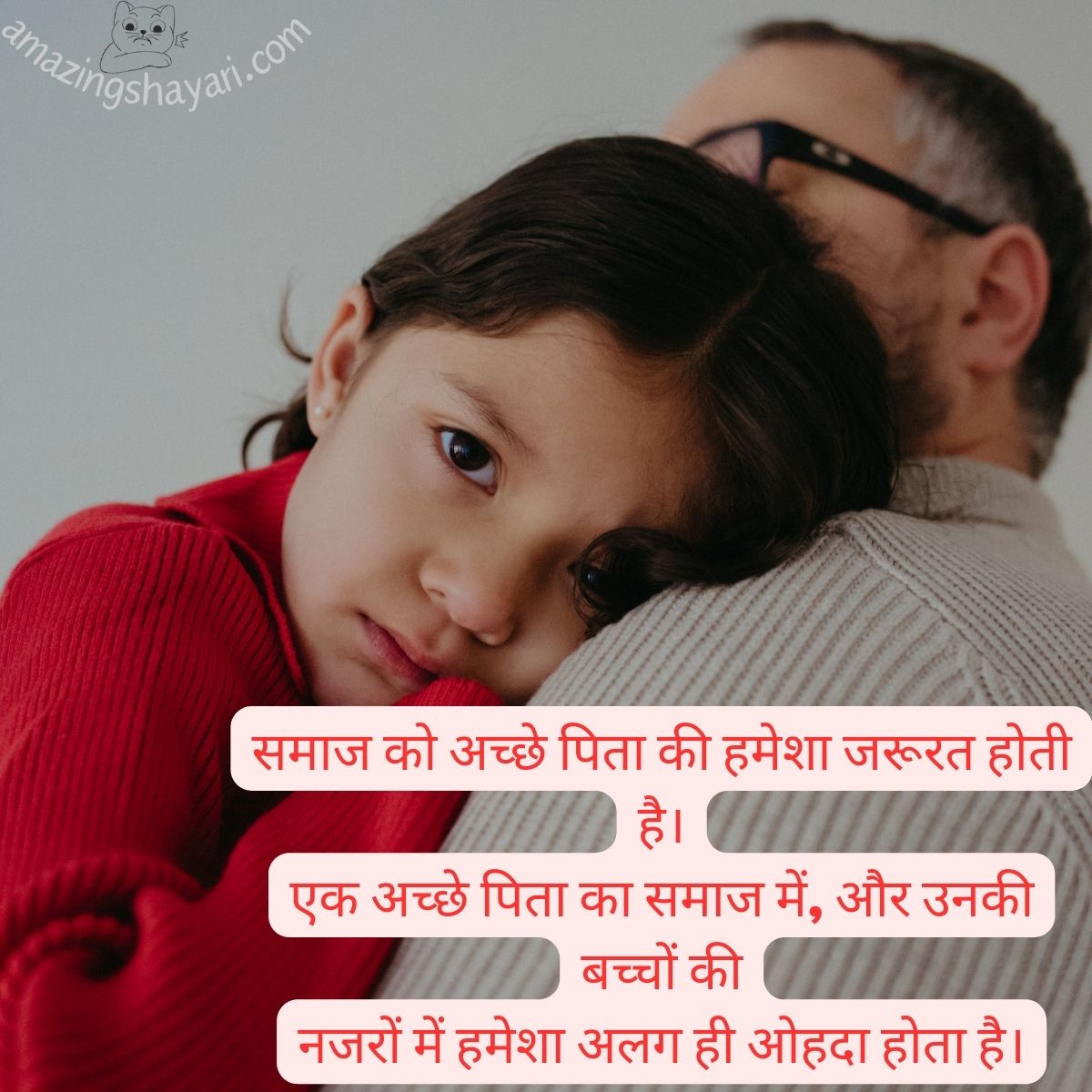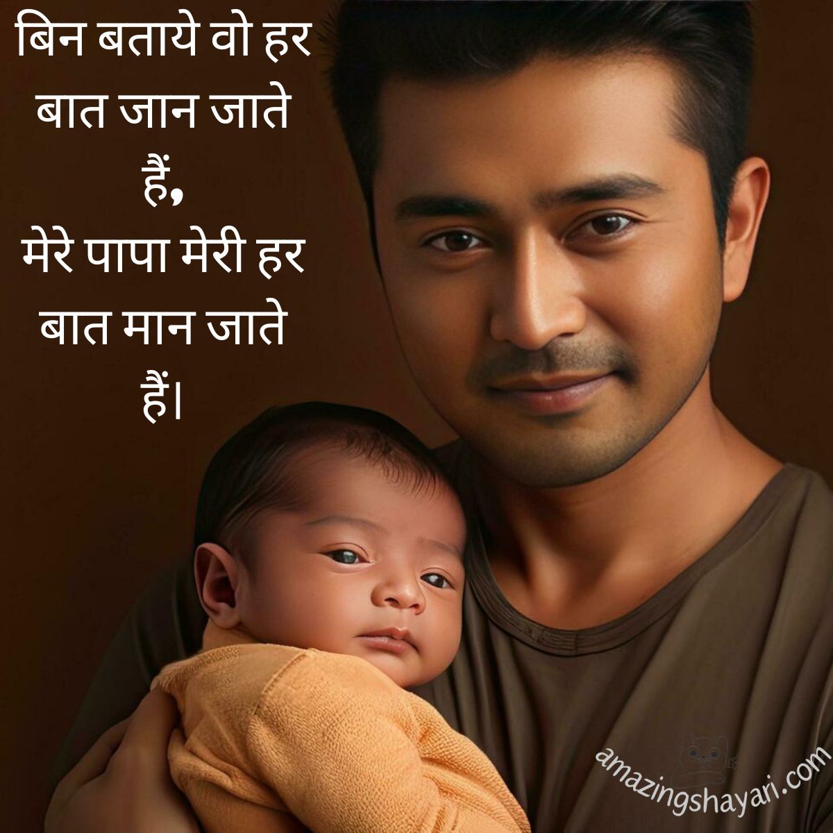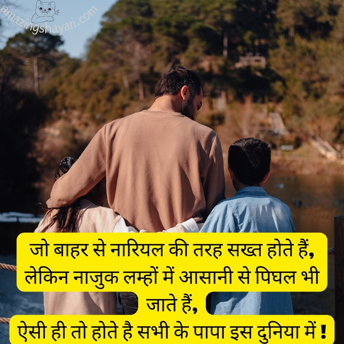 पिता के ही पीछे पूरा परिवार चलता है एक पिता अपने बच्चों के लिए एक महान इंसान होते है। एक पिता ही होता है जो अपनी बच्चो की मांगी हर इच्छा को पूरी करते हैं । इसी लिए आज का पोस्ट पापा के लिए इस पोस्ट में हमने Papa Shayari in Hindiआदि शेयर किये हैं ।