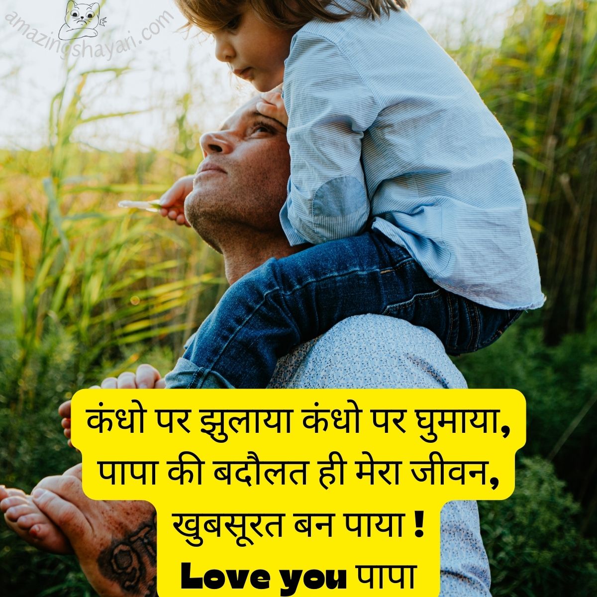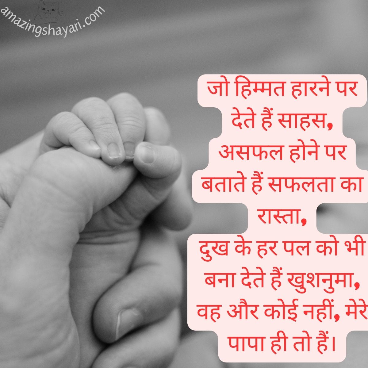 आज हम आप के लिए लाये हैं। Best 200+Papa Shayari in Hindi पापा मेरे हीरो, पापा मेरे सबसे फेवरेट हीरो रहे हैं हमेशा चाहे जिंदगी की दौड़ में चाहे मेरे से प्यार करने की दौड़ में आपके जीवन में जितना जरुरी माँ का प्यार है उस से कही ज्यादा अहमियत है पापा की पापा के बारे में जितनी तारीफ करू कम ही पढ़ जाता है ।