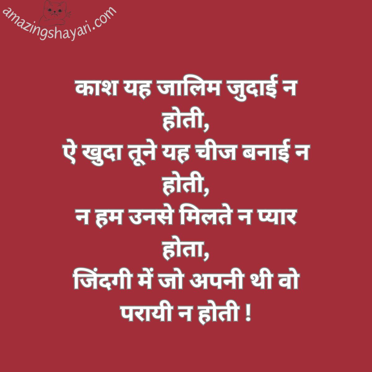 दोस्तों अगर आपको भी sad shayari in hindi पसंद हैं या फिर आप इंटरनेट पर sad shayari images सर्च कर रहे है तो आपको कही और जाने की जरूरत नहीं है क्योंकि यहाँ आपको हर तरह की sad life shayari with images मिल जाएगी जिनको आप बड़ी ही आसानी से download कर सकते हैं साथ ही अपने दोस्तों को भी send कर सकतें हैं।