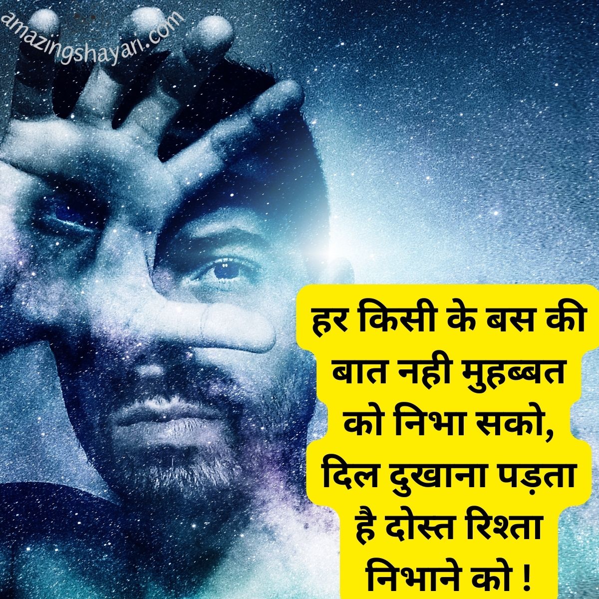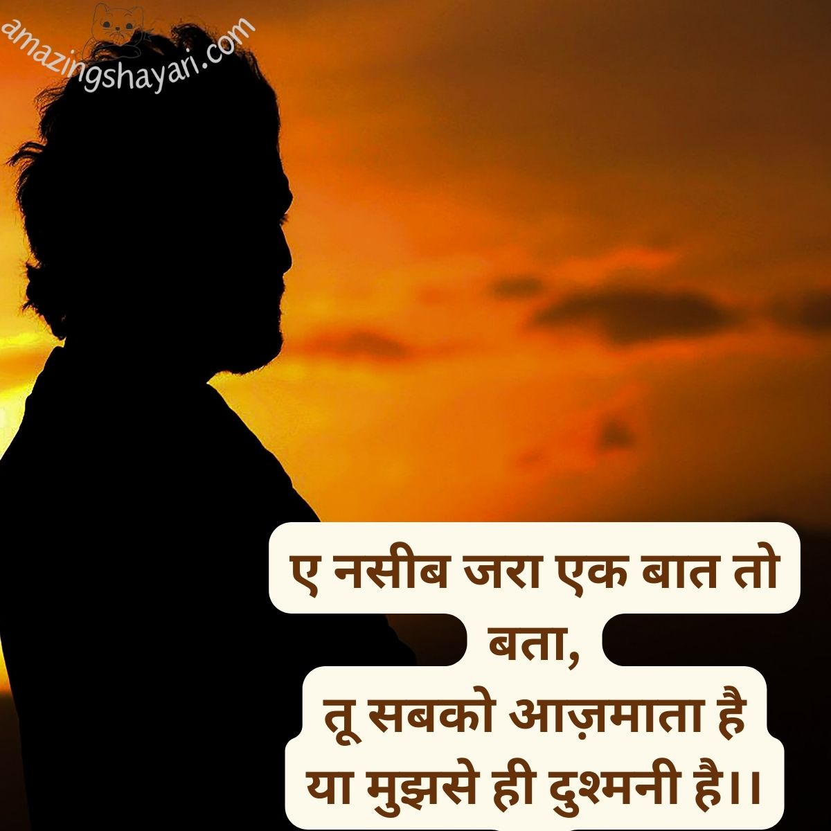 Hello दोस्तों Amazing Shayari में आपका एक बार फिर से स्वागत हैं।आज हम लाये हैं। Sad Shayari in Hindi दोस्तों हर इंसान अपने जीवन वो सब कुछ हासिल करना चाहता है जो वह सोचता है और उसको पाने के लिए वह दिन-रात कड़ी मेहनत भी करता है लेकिन जब उसका परिणाम उसकी अपेक्षा के विपरीत आता है तो वह इंसान दुखी हो जाता है और अपनी किस्मत को दोष देता है साथ ही वह sad shayari in hindi अपने स्टेटस पर डालता है और अपना दुख कम करने की कोशिश करता हैं।